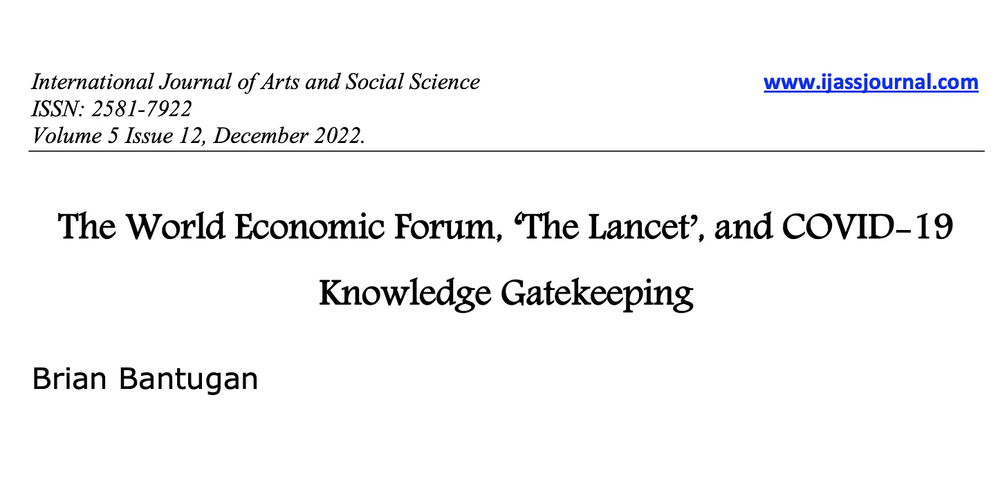 The International Journal of Arts of Social Science published the paper titled: “The World Economic Forum, “The Lancet,” and COVID-19 Knowledge Gatekeeping.” That paper is seminal in understanding just how corrupting the WEF as well as the WHO have become to scientific journals, scientists, universities, and media (fact-checkers).