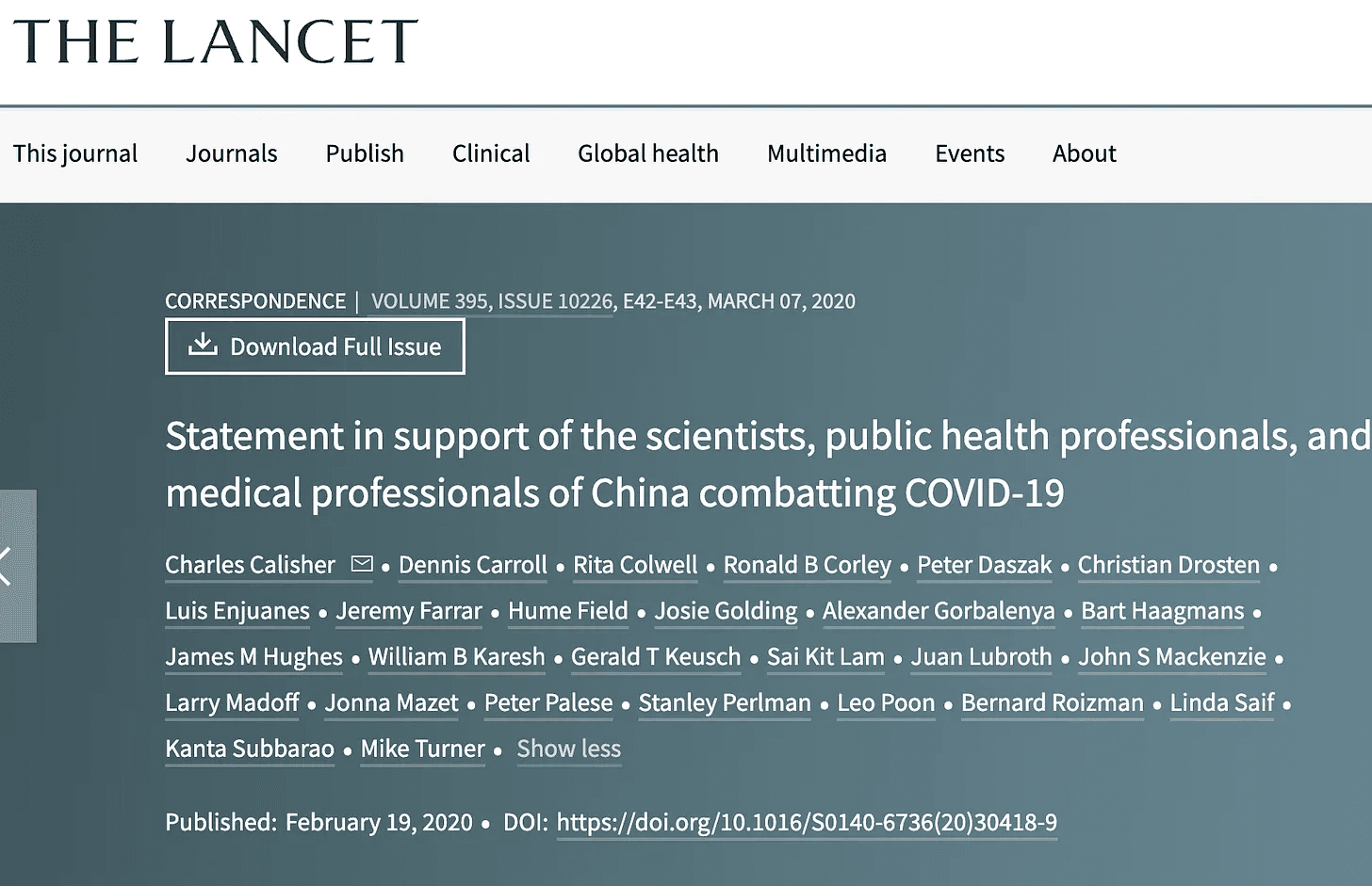 Relevant online pieces of literature were sampled through a snowballing technique using the Google search engine platform to elucidate on the funding and ownership of the Lancet, and the 27 authors of the said article and their affiliations with higher learning institutions vis-à-vis their connections with the World Economic Forum to highlight their implications to gatekeeping and COVID-19 knowledge production in journal publications, particularly that of the Lancet.